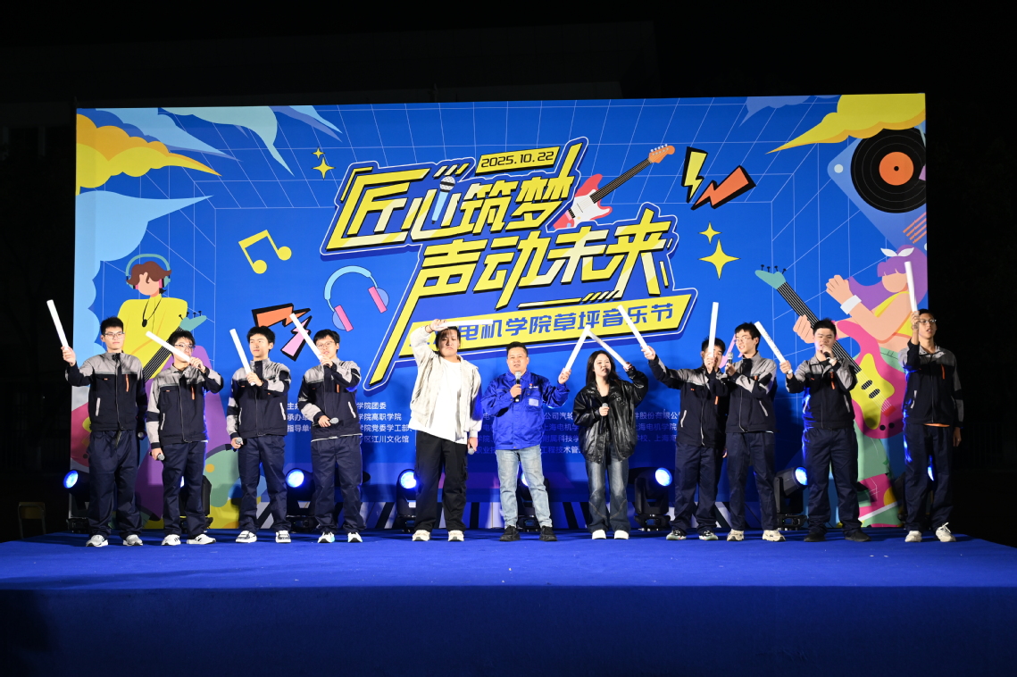 金秋送爽,乐动江川。10月22日晚,上海电机学院“匠心筑梦,声动未来”草坪音乐节在闵行校区足球场成功举办。本次活动由校团委主办、高职学院承办,不仅是一场青春洋溢的艺术展演,更是一次深化“职普融通、文化育人”、推动校政企协同发展的生动实践。上海电机学院党委副书记朱洪春,相关职能部门负责人,闵行校区各二级学院副书记,闵行区江川文化馆负责人,上海汽轮机厂上海工匠王勇,上海微创软件股份有限公司代表,上海电机学院附属科技学校、上海市环境学校、上海海事大学附属职业技术学校以及上海工程管理学校等四所中职院校师生代表共同参与,齐聚电机校园,共谱融合新篇。