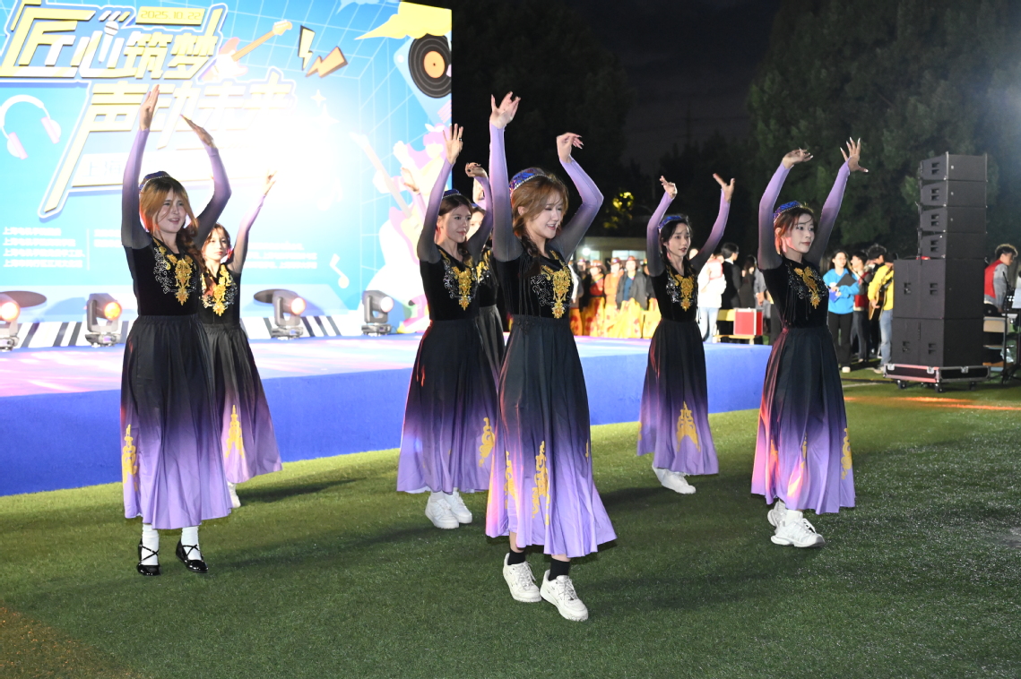 第三篇章“燃舞劲歌”将现场气氛推向高潮。街舞社《Feel Special》洋溢青春活力,上海工匠王勇与在校学生合作演绎《夜空中最亮的星》,以“工匠+学生”的跨界形式,诠释了匠心精神的代际传承与产教融合的育人实效,彰显职普融通在艺术舞台上的生动实践。