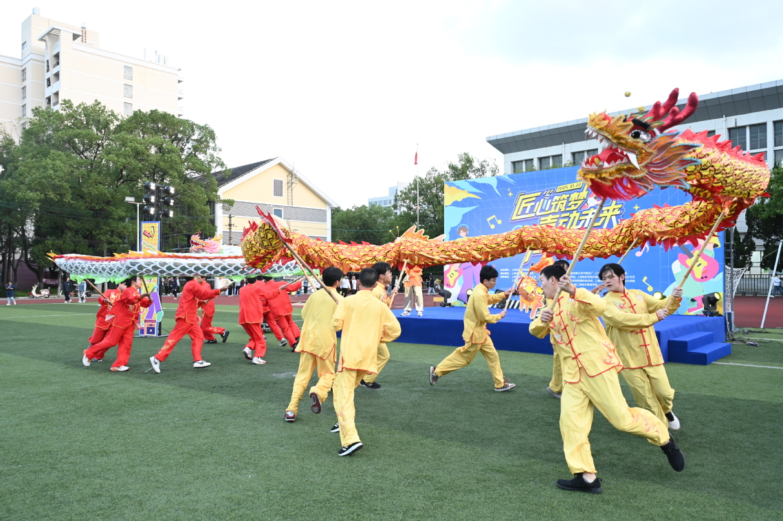 音乐节在气势恢宏的舞龙表演《鲤鱼跃龙门》中拉开序幕,以“舞跃龙门”为序,寓意职教人才跨越成长、勇攀高峰的精神风貌。随后,高职学院党总支书记、院长蒋建军致辞。他表示,本次音乐节是学校贯通中职、高职与企业资源,推动“文化育人、职普融通”理念落地的重要平台,旨在通过艺术交流强化与社区、中职校及企业之间的合作纽带,进一步宣传学院“职育匠才”的文化内涵,并预祝音乐节圆满成功。