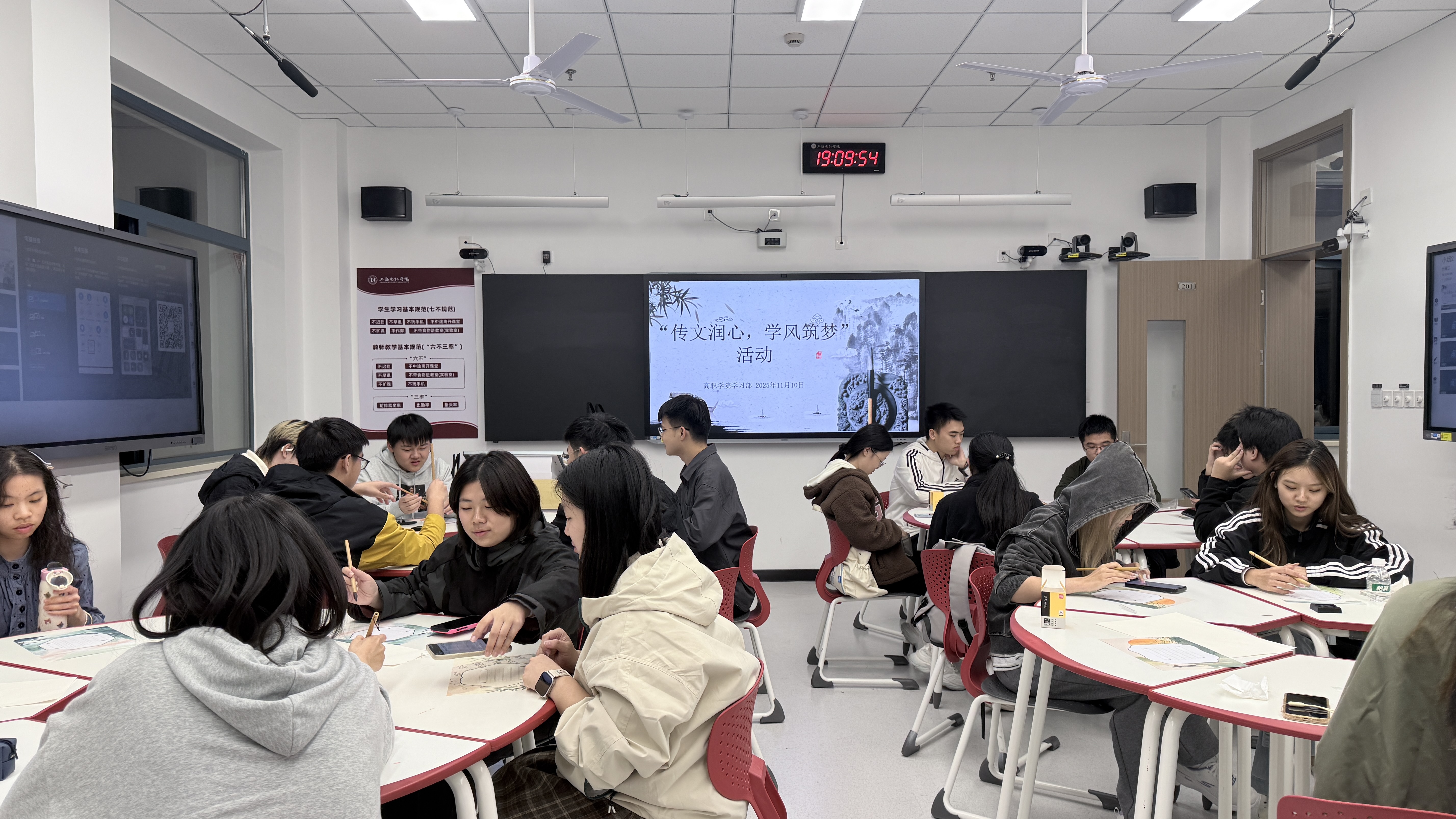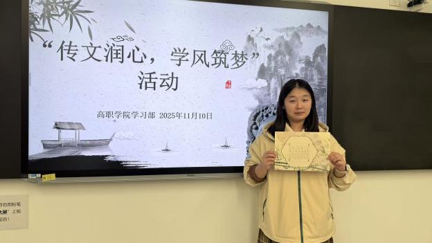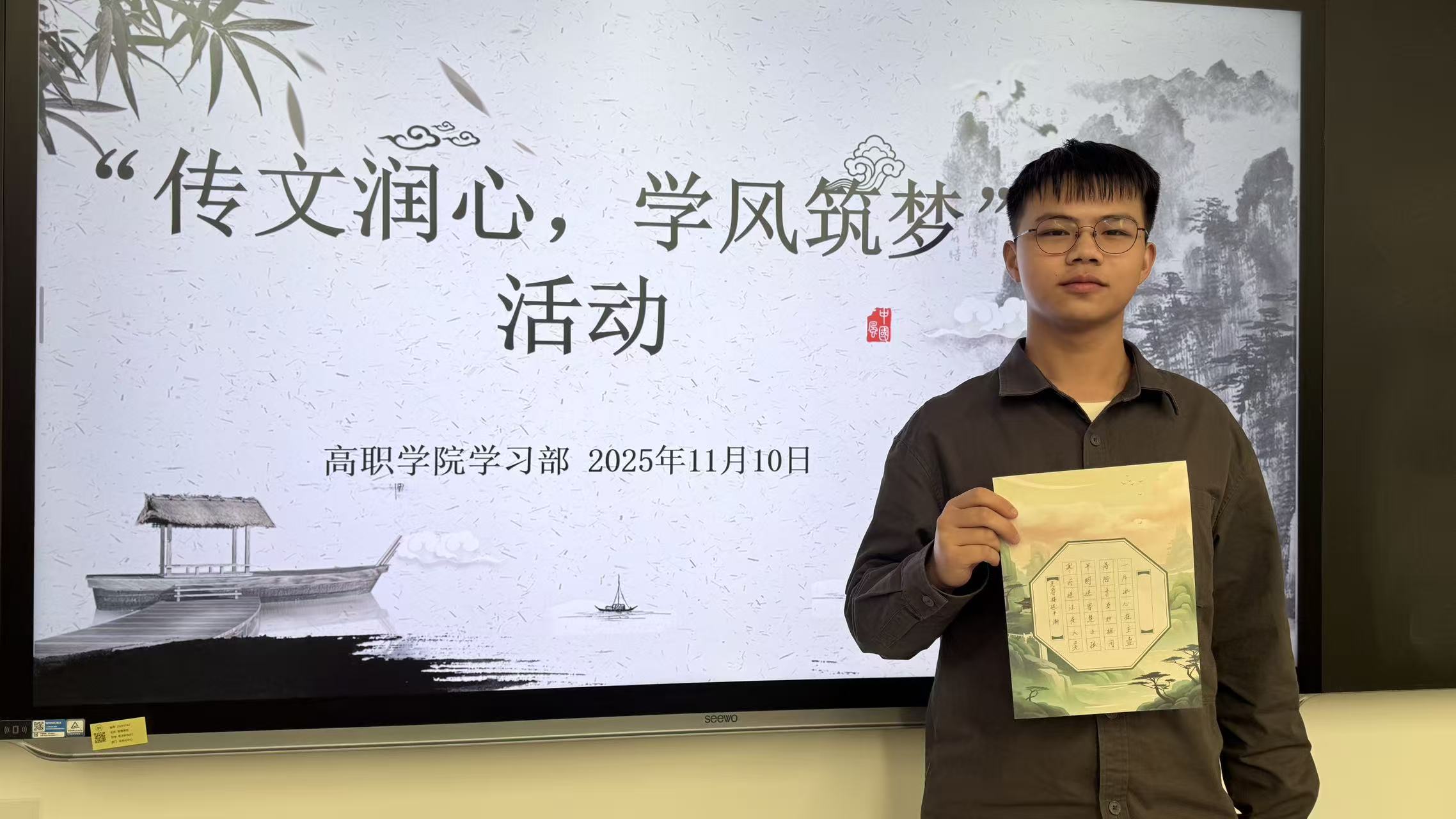 传统书法,是古人修身养性的精神载体,是中华民族独有的文化图腾。这份沉淀在宣纸上的艺术瑰宝,不仅镌刻着汉字演变的历史脉络,更蕴含着刚柔并济的处世智慧。书香氤氲的校园学风之所以能够薪火相传,离不开传统文化的滋养与浸润。为引导同学们探寻书法背后的文化基因,锤炼笔墨创作的艺术素养,涵养静心沉潜的治学态度,进一步厚植校园文化底蕴,2025年11月10日,高职学院举办了“传文润心,学风筑梦”活动。该活动旨在通过笔墨实践与文化感悟,让同学们在一横一竖、一提一按中感受传统书法的独特魅力,体悟中华优秀传统文化的博大精深,让学风建设在文化传承中焕发别样生机。