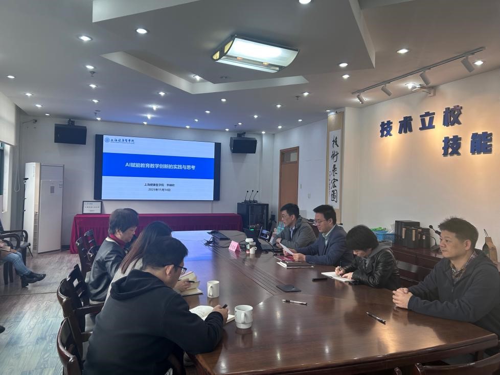 为积极响应学校2025年学校本科教育大会号召,统一思想,扎实推进人才培养改革各项任务落实见效,高职学院于2025年11月14日上午9:30举行专题教研活动“AI赋能教育教学创新”,组织全院教师开展了深入的主题研讨活动。本次活动聚焦人工智能技术与职业本科教育的深度融合,旨在推动课堂教学质量提升与教师教学能力发展,为构建智能化、精准化、高效化的现代职业教育体系奠定坚实基础。