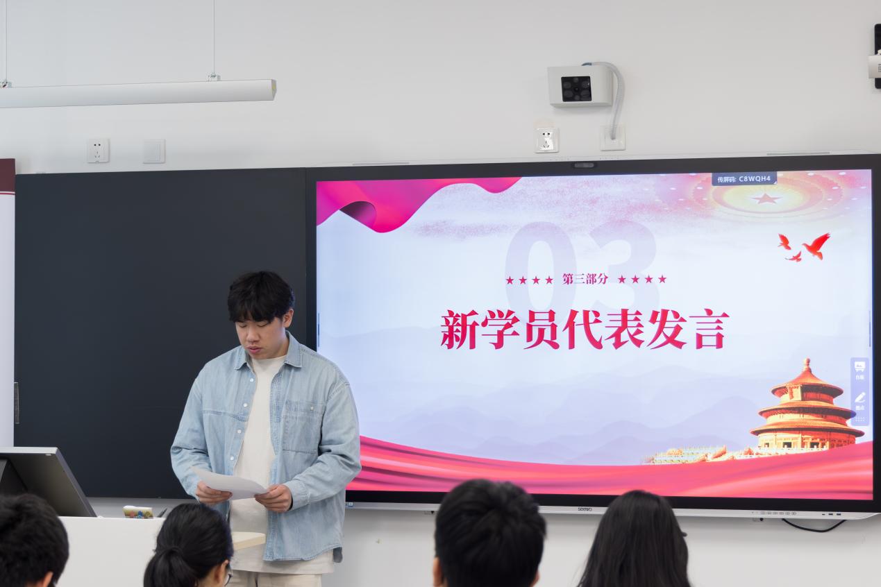随后,学员代表、来自电动2551班的汤俊灏作了题为《淬炼初心强信念 青春奋进向党旗》的发言。他结合自身学习成长经历,分享了对党的百年光辉历程的认识,表达了新时代青年学子向党组织靠拢的坚定决心。他承诺,将珍惜培训机会,沉心学习党的理论,立足专业、锤炼技能,以实际行动践行“工匠精神”,努力做到思想上、行动上同步向党员标准看齐,争取早日成为一名合格的共产党员。
